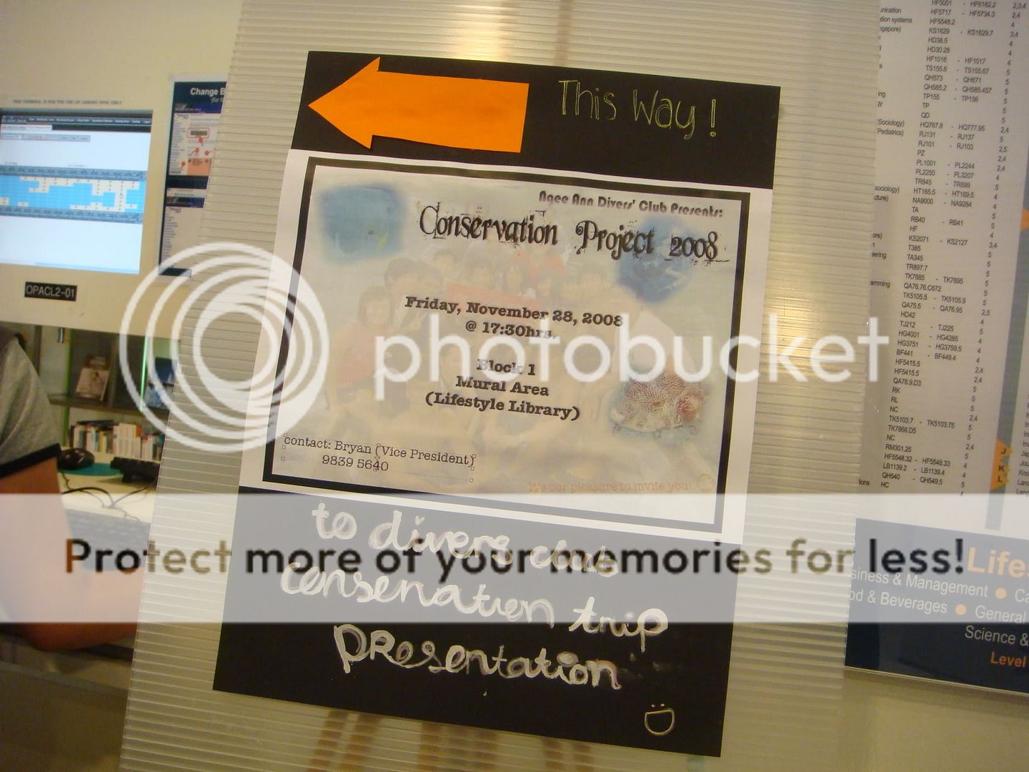 We, the people from NP divers held our Marine Conservation Project Presentation '08 last Friday at the school's library. A big thank goes out to those who did a splendid job in doing all the talking, as well as the other club members who attended. Oh, and not forgetting the school directors and club advisors.